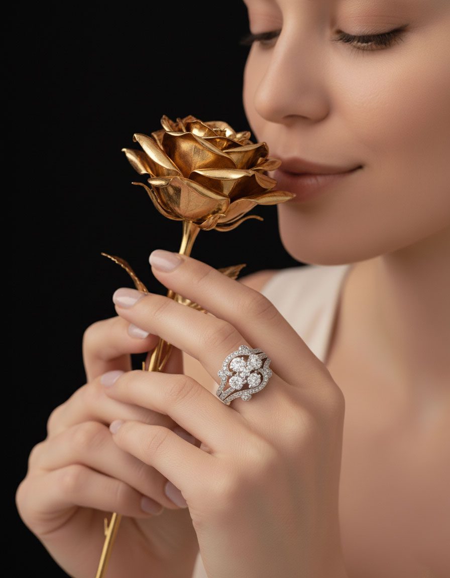 From enhancing diamond clarity to adjusting metal tones—white gold to rose or yellow gold—we ensure every ring image aligns with your brand’s style and color standards.
